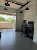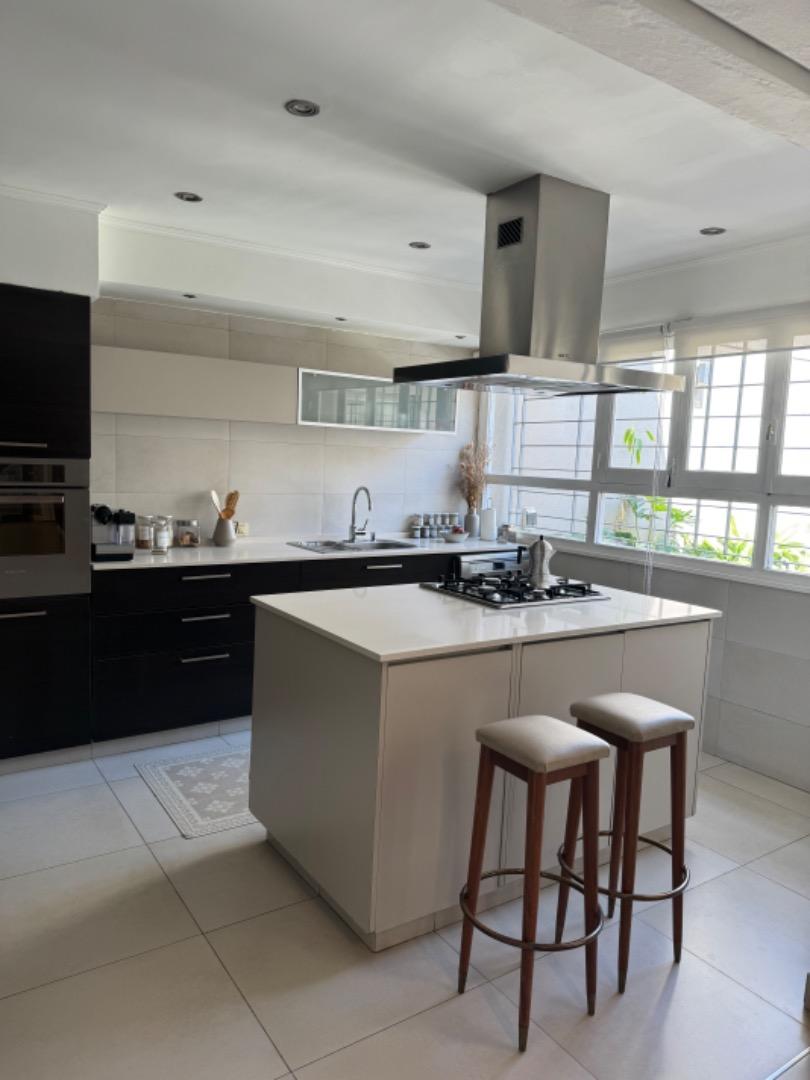 Cocina comedor súper moderna con muebles de estilo todo en celestone.